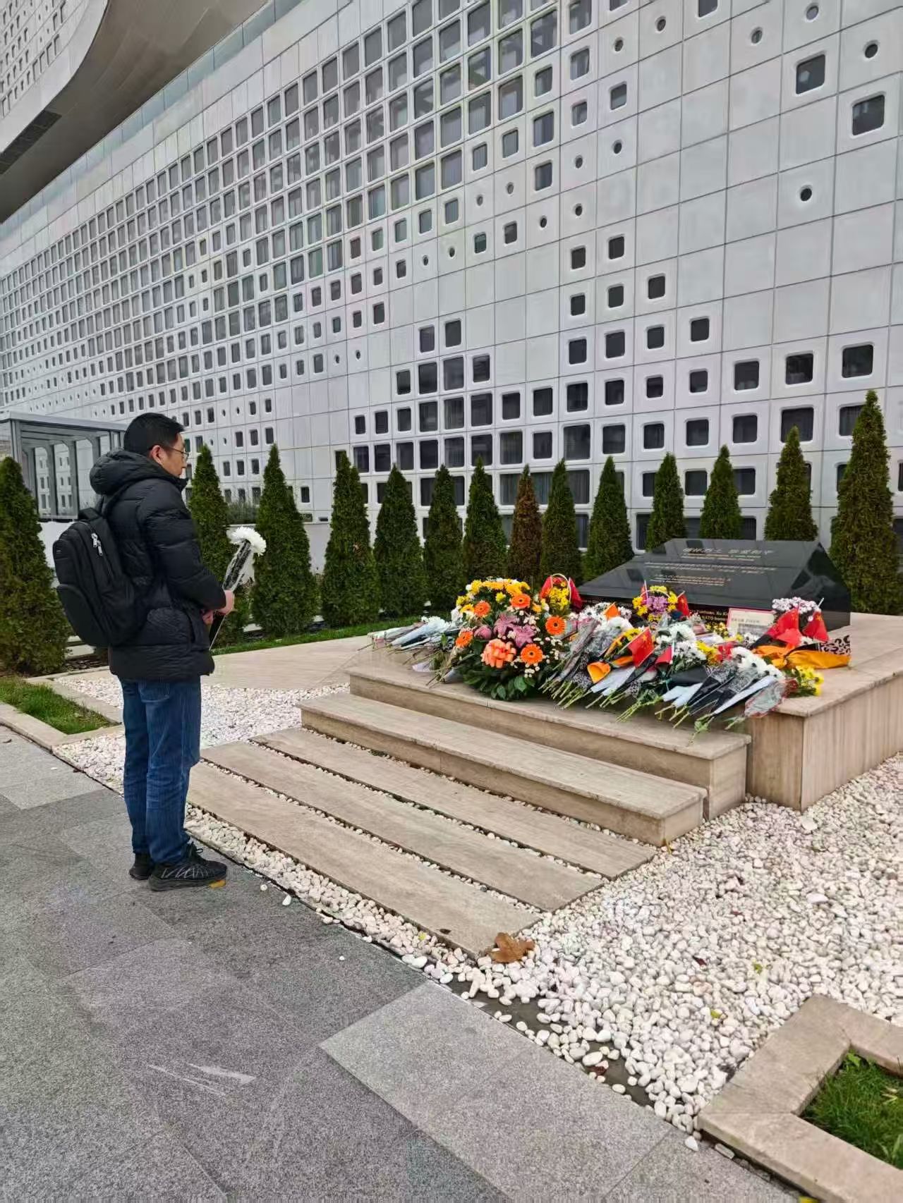 På stedet sto teammedlemmene høytidelig foran monumentet påskrevet "Æresmartyrer, verdsetter fred", og reflekterte over fortiden. Det svarte monumentet, gravert med kinesisk og serbisk tekst som registrerer det delte båndet mellom Kina og Serbia i krisetider, var omgitt av friske blomster og kinesiske nasjonalflagg – symboler på varig respekt over tid. "Å være her gjør verdien av fred enda mer håndgripelig," bemerket teamlederen. "Freden disse martyrene voktet med livene sine er grunnlaget for vårt oppdrag som medisinske fagfolk for å beskytte liv."
